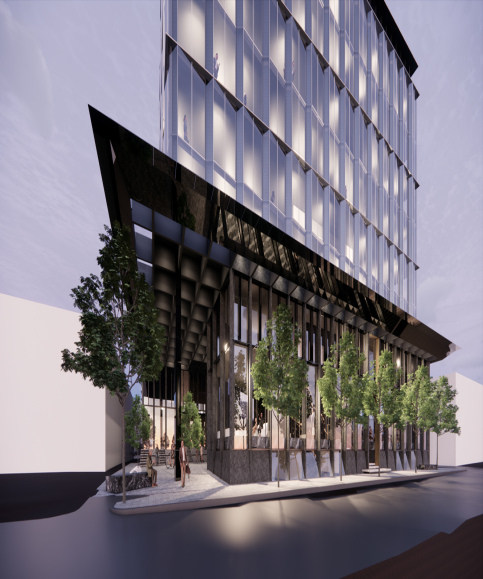 Scope of Works: Install of 8-storey Unitized Curtain Wall office building. Supply and install of ground floor retail shopfront
